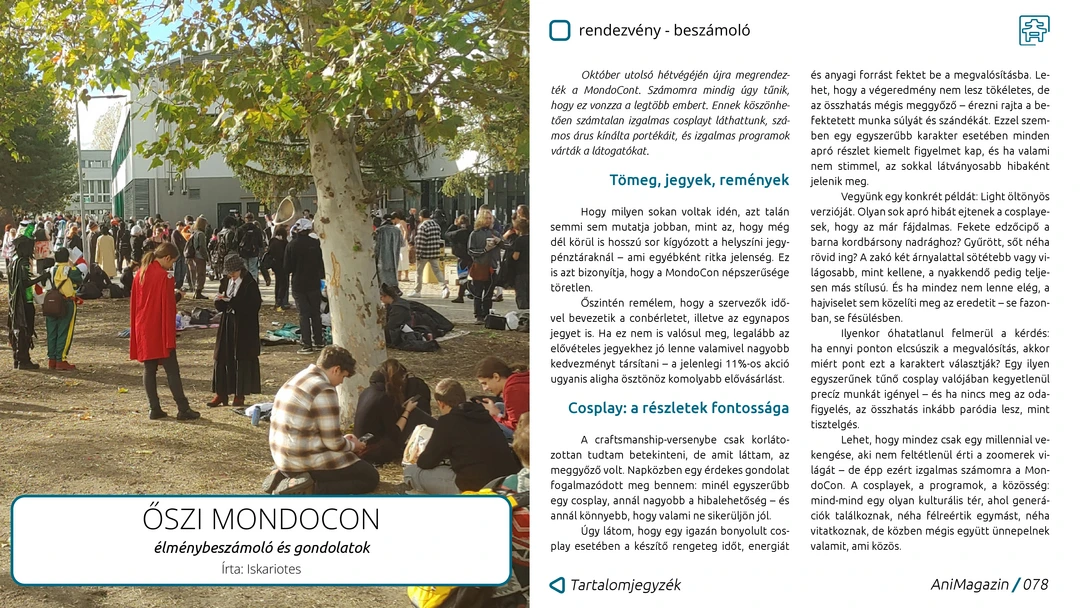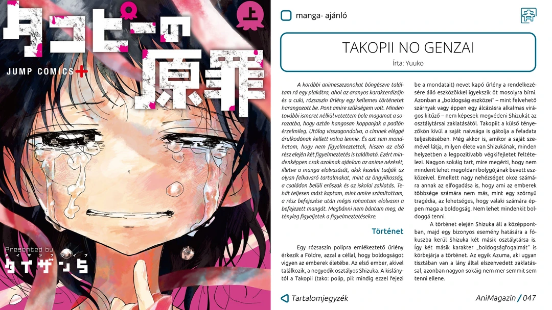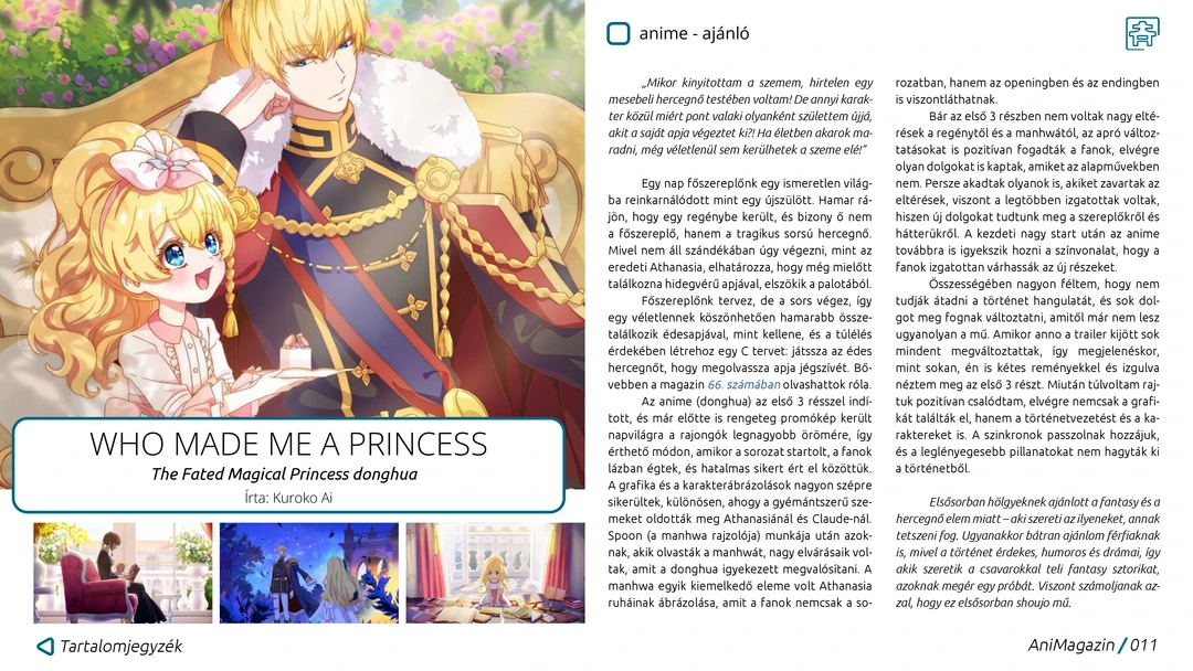 Who Made Me a Princess, Karaoke Iko! / Muchuu sa, Kimi ni., Nezha 2 és téli szezonos anime ajánlók, Uma Musume: Pretty Derby és Devil May Cry bemutatók, hazai mangakörkép, The Marshal King, Takopii no Genzai, Cesare és Sengoku mangaajánlók, Koreai Filmfesztivál, Japán filmhét és Őszi MondoCon beszámolók, interjú m00nnal, a Bor és kard balladája illusztrátorával, japán automaták története, valamint további remek cikkek az ingyenes, online AniMagazin legújabb számában!