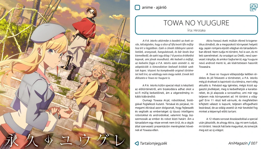 Hyakuemu., Towa no Yuugure, Shabake, Twisted Wonderland, KPop Demon Hunters és téli szezonos anime ajánlók, 2025-ös animés évértékelő, hazai manga ár-érték arány vélemény, MPD Psycho és Kon Satoshi: Opus mangaajánlók, 10Dance és The Spirealm (Kaleidoscope of Death danmei) live action bemutatók, interjú Netimával, a Guardian danmei regény fordítójával, az onsenezés története, valamint további remek cikkek az ingyenes, online AniMagazin legújabb számában!